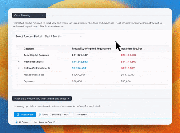 Starting today, Tactyc has a new Cash Planning module to estimate capital requirements for the fund over a specified time period - both probability-weighted requirements and maximum requirements.