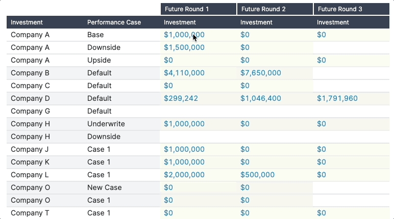 The Planning View is a powerful feature that enables massive and wholesale changes to the fund model while also removing friction associated with updating each investment manually.