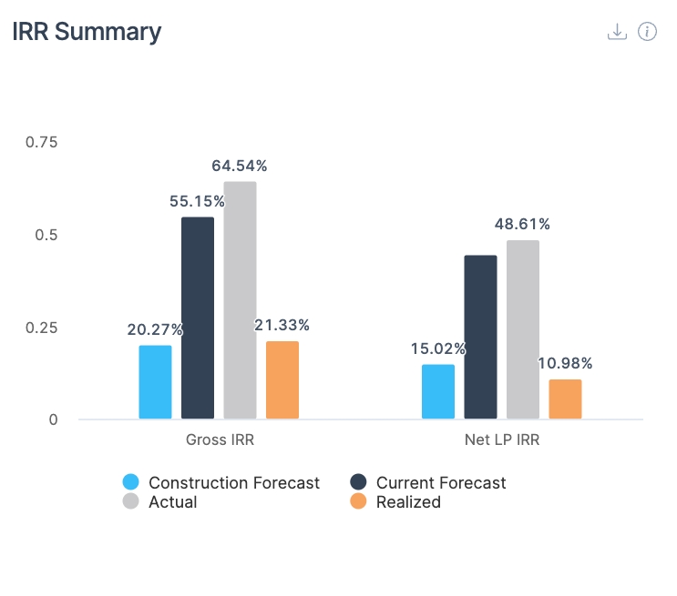 IRR performance summary now includes a Realized IRR calculation that calculates the IRR from realized cash flows only.