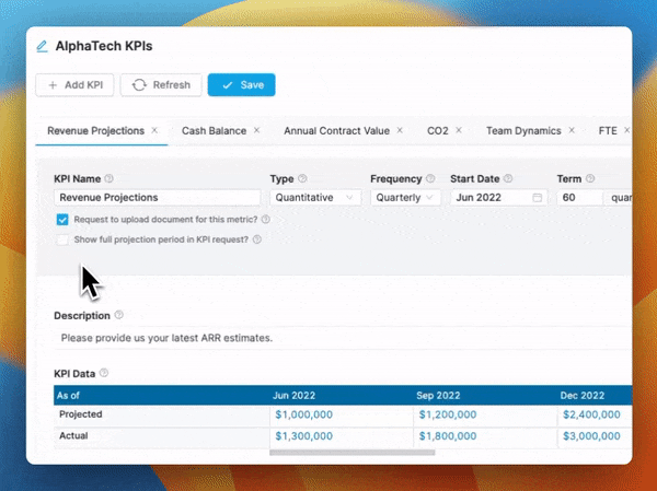 Starting today, you can customize a KPI Request to ask for projections data, not just actuals.